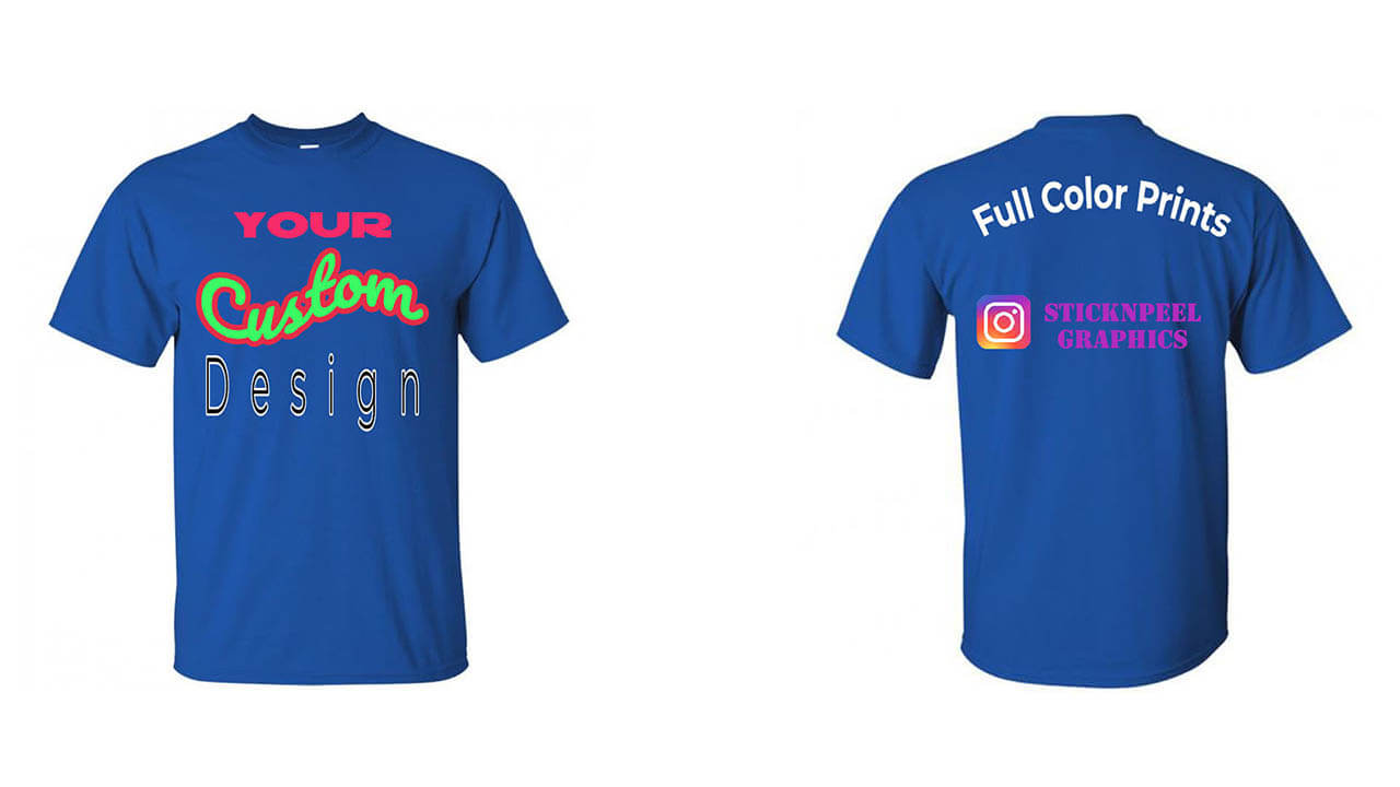 Put your favorite designs on a t-shirt! Our custom apparel is printed in-house. Get full-colored prints on t-shirts, hoodies, and more. With up to a 16" x 20" print area, we can print oversized prints, custom neck tags, sleeves, and more! We're your one stop shop for premium custom apparel printing. We're always adding more items to print on, so check back often!